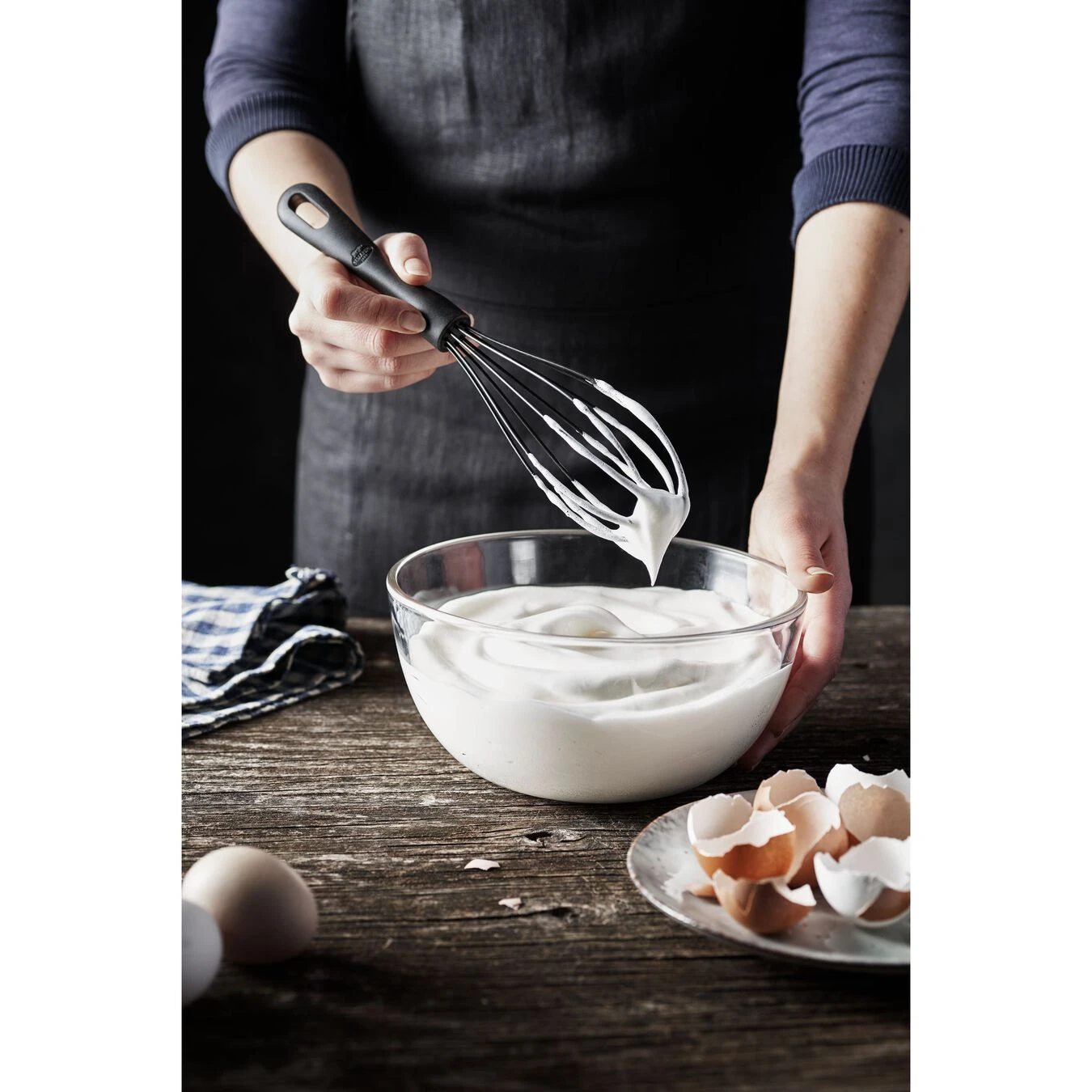 Der Schneebesen der Serie Nero von BALLARINI hat schlagende Argumente, um ein Teil deiner Küchencrew zu werden: Er schlägt flüssige und halbflüssige Speisen wie Saucen, Eischnee oder Rührei in Windeseile locker-luftig auf. So bleibt dir mehr Zeit, dich um deine `ragazzi´ zu kümmern.