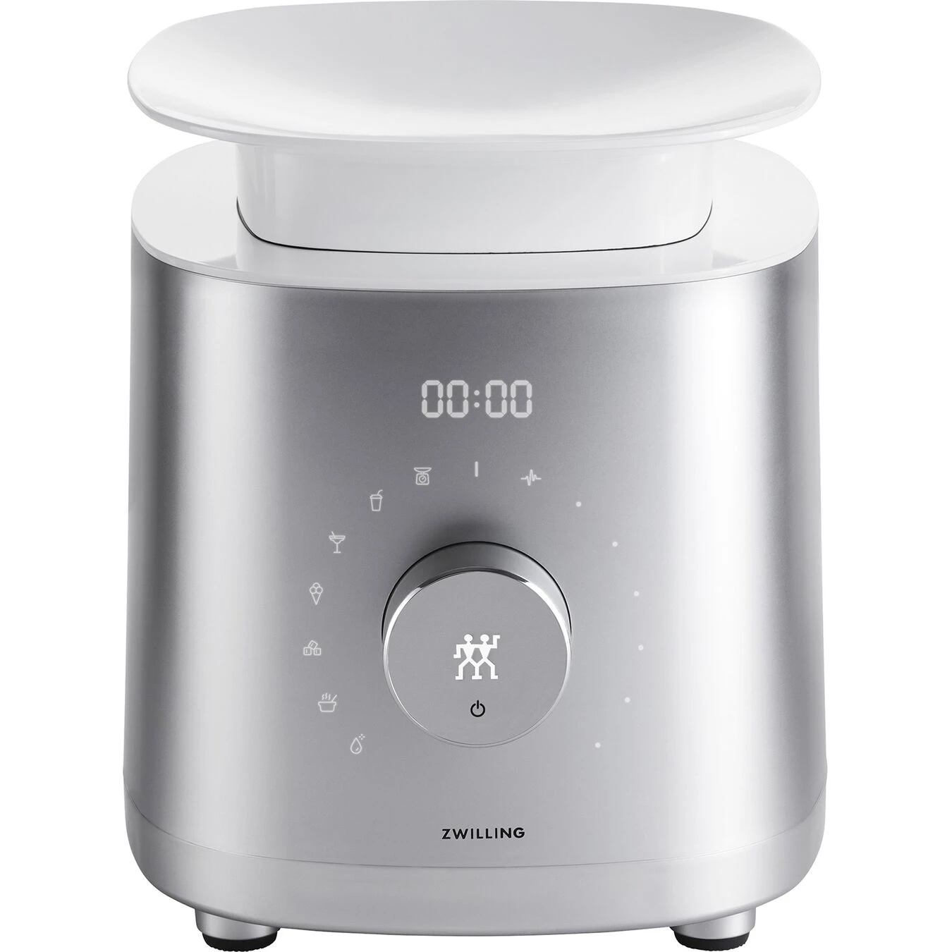 Der Mixer mit seinem leistungsstarken Gleichstrommotor, 7 Automatikprogrammen, 12 Geschwindigkeitsstufen und zweiflügeliger ZWILLING Winglet-Klinge mit Wellenschliff und Piranha-Zahnung bringt alles Nötige mit für schnelle Mixergebnisse. Die integrierte Waage, der 1,8-Liter-Mixbehälter aus BPA-freiem Tritan und praktisches Zubehör wie ein Stampfer mit integriertem Thermometer ergänzen ihn.