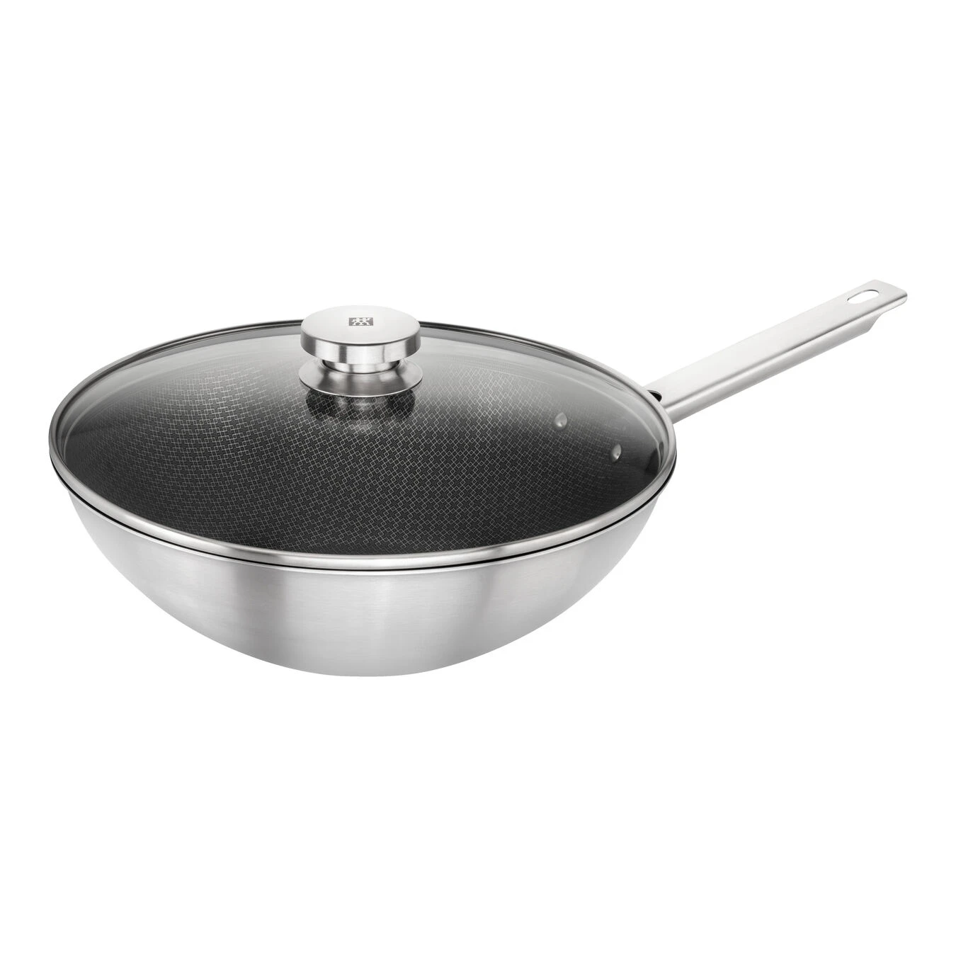 Auf den Geschmack gekommen? Hier kommen die Zutaten für diesen hervorragenden Wok aus dem Hause ZWILLING: Die Permaresist Ultra Beschichtung ist ein erstes Highlight. Dank ihrer Mikrogravur-Technik entsteht ein Profil aus Höhen und Tälern, das die Vorteile von beschichteten und Edelstahlpfannen vereint. Selbst Edelstahl-Küchenhelfer zerkratzen die Beschichtung nicht und gleichzeitig ist der Joy Plus Wok sehr pflegeleicht.